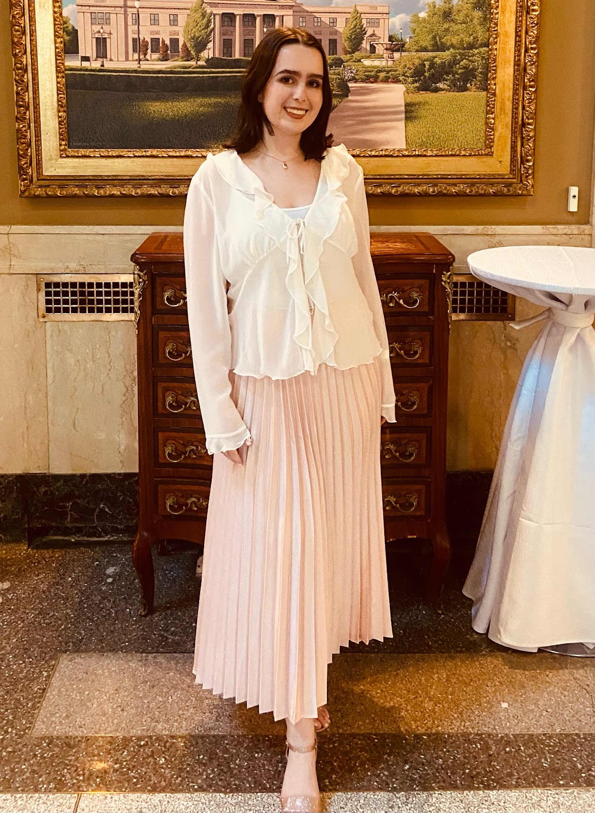 4. It was Eve's Arts and Science formal Thursday night, so as promised, here is the outfit we bought in February with The Eve inside it. She did end up wearing the shirt before formal night because they had a party for the musical where the theme was Hamilton (the city where they live) or Hamilton (the musical) and she figured out the shirt worked well for Alexander Hamilton cosplay.