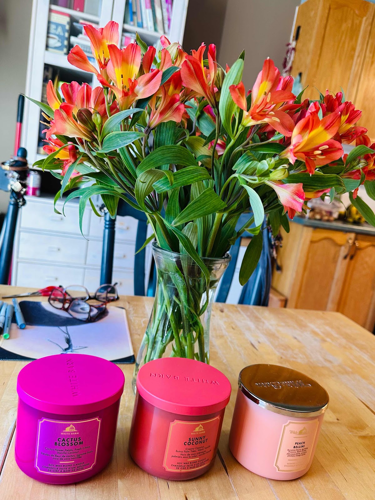 2. When we went for lunch last week and then Bath and Body Works, Pam and I mocked Sonia gently for buying eight hand soaps. Then I got home and kept looking at the shades-of-pink candles behind us in our selfie, and THEN I got an email saying the three-wick candles were half-price, and friends, mock on.