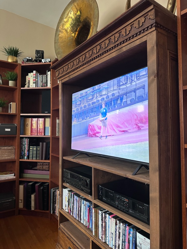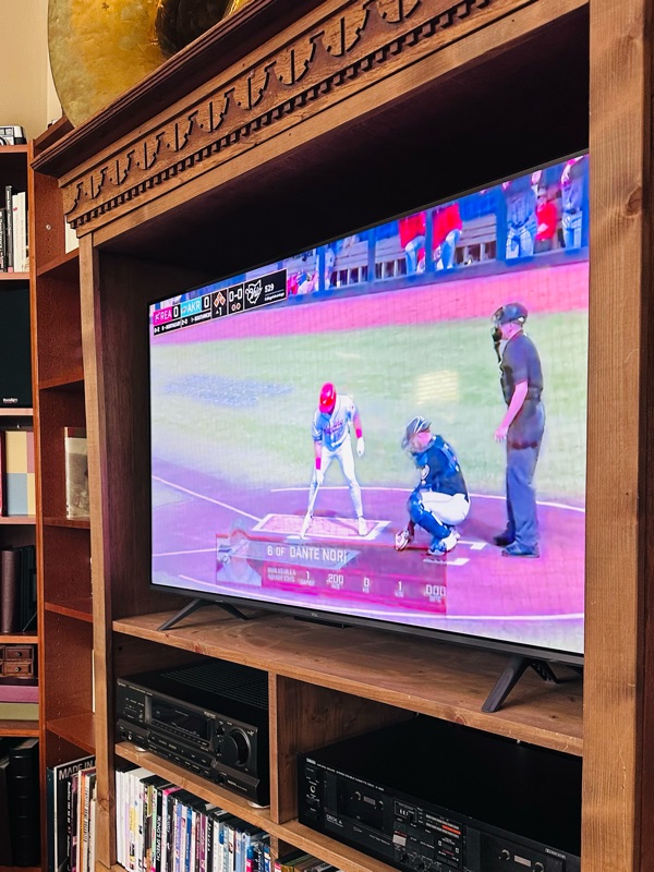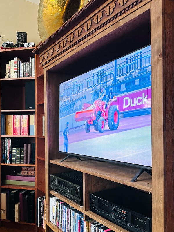 We hot tubbed and watched a couple of just unbelievably bad Blue Jays games (well, bad for us, not for the other guys), and a little bit of the Rubber Ducks game - we were confused about why the camera was on a guy driving a tractor but apparently it's a tradition for the tractor to deliver a box of -- balls? Game-day items? The team was 3-0 as of yesterday, so Angus is happy.