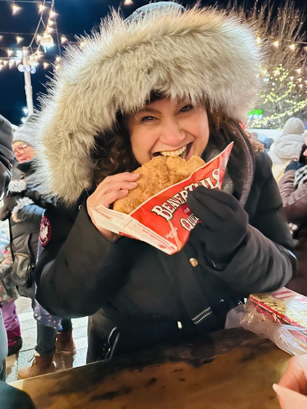 Friday night we went to the Christmas outdoor market with Matt's colleagues, two of whom were from California and wanted to try a beaver tail and... be cold, I guess? I love the Christmas market and really like these women. We picked up Maryam to drive down, and on the way we were trading funny stories about my husband, who suddenly realized that connecting the woman who knew all of his embarrassing stories from the office with the woman who knew all of his embarrassing stories from whom was perhaps a regrettable choice. Then we realized that Camille knew many of his embarrassing stories from travel, which closed some kind of magical miserable loop for him and was very enjoyable for all of us.