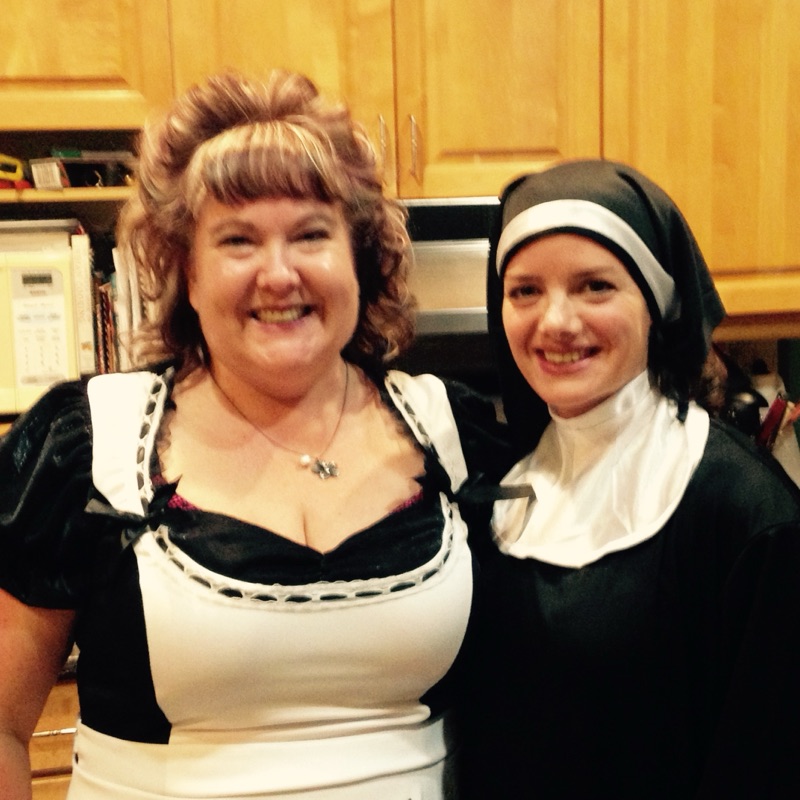 | A friend lent me a "Dark Alice in Wonderland" costume, which turned out to be a French maid costume with the Cheshire cat on the apron. I said "I look like a stripper". Eve said "No y.... well.... oh it's fine, let's just go." My rack was fantastic, I have zero regrets. |