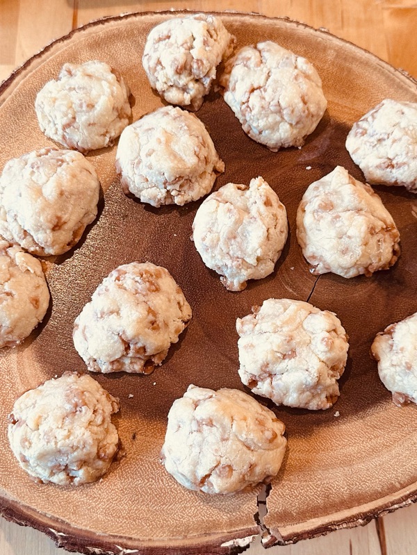 I started Christmas baking much later than usual, which honestly is probably fine, given the number of toffee shortbread cookies I ate out of the first batch. Today I mixed another batch and Eve rolled and baked them while I wrapped. Now she is off with her friends again and I am going to do a puzzle with my son. Also, it was supposed to rain the last three days and instead we have gotten a gentle fall of snow every day.