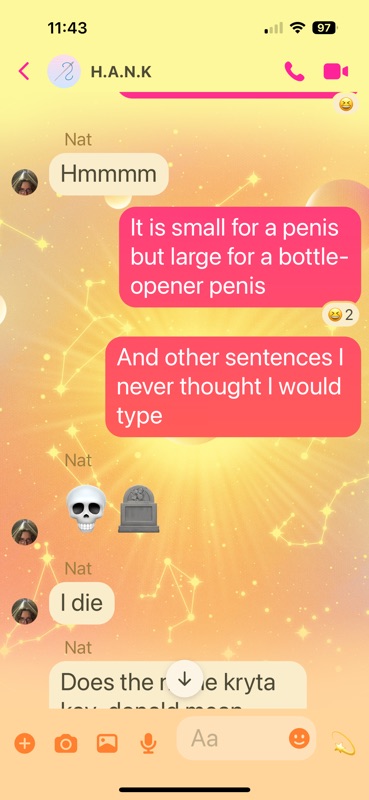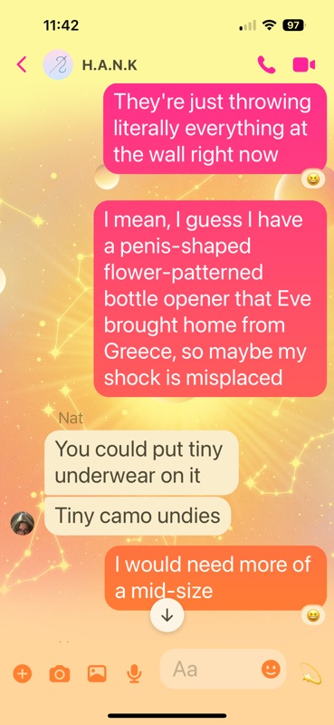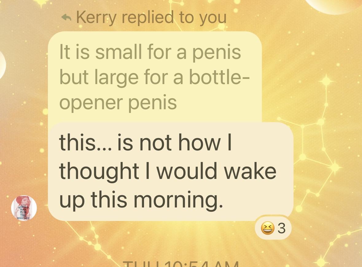us reasons, after much group encouragement, which is only one reason why this chat is such an enormous gift, even when we're talking about penis-shaped stuff.